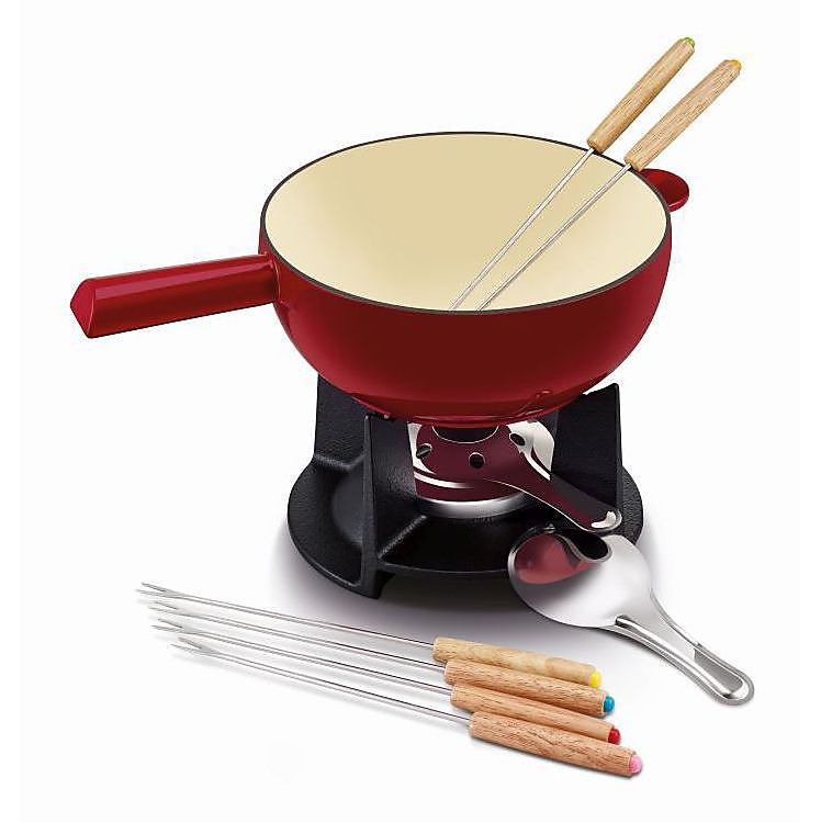 Zwitserse kaasfondue is kinderspel in deze stevige gietijzeren fondueset van Beka. Gietijzer is uiterst duurzaam, zorgt voor een beter warmtebehoud en dankzij de geëmailleerde toplaag is de set gemakkelijk schoon te maken. Kan ook gebruikt worden voor chocoladefondue en is geschikt voor alle kookvuren incl. inductie en oven.